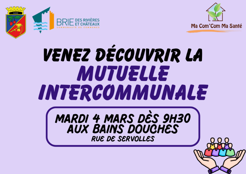 Publiée le lundi 9 février 2026Mercredi 4 marsÀ partir de 9h30Aux Bains-Douches, rue de ServollesLa commune organise une journée de permanence destinée aux administrés souhaitant obtenir des informations sur la mutuelle intercommunale, qui propose des tarifs avantageux.Prise de rendez-vous obligatoire :- Directement à l'accueil de la mairie aux horaires d'ouverture- Par téléphone au 01 64 42 51 30- Par mail : mairie@guignes.frN'hésitez pas à réserver votre créneau pour bénéficier d'un accompagnement personnalisé.